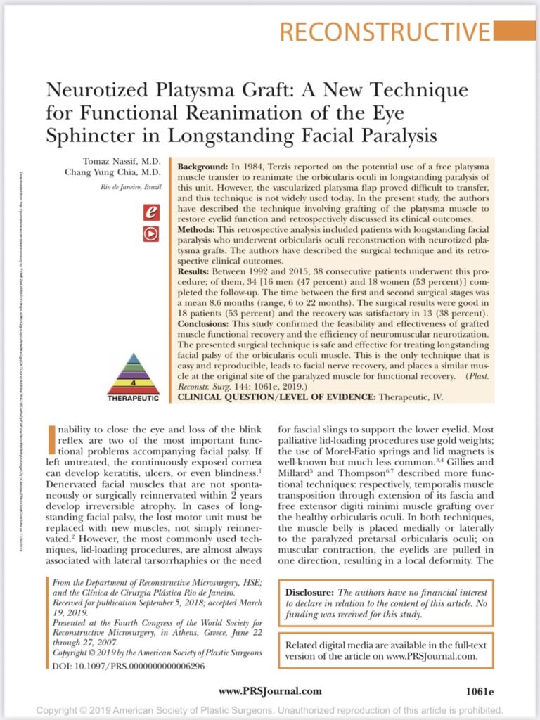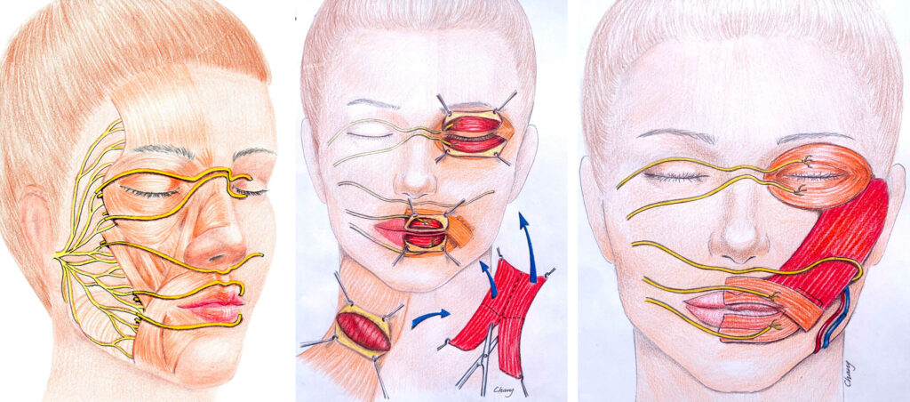 Essa combinação (crossface + transplante) é considerada o padrão ouro para recuperar expressões faciais, incluindo o sorriso e o fechamento dos olhos.