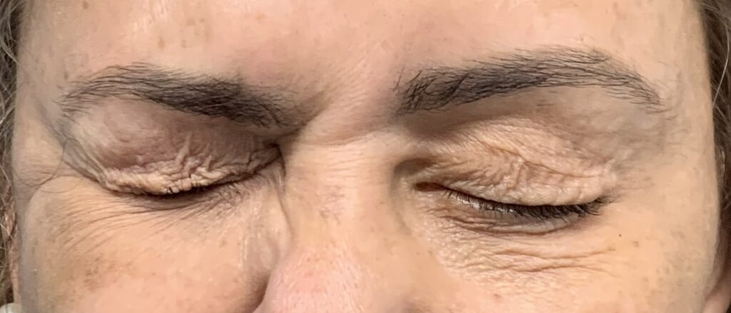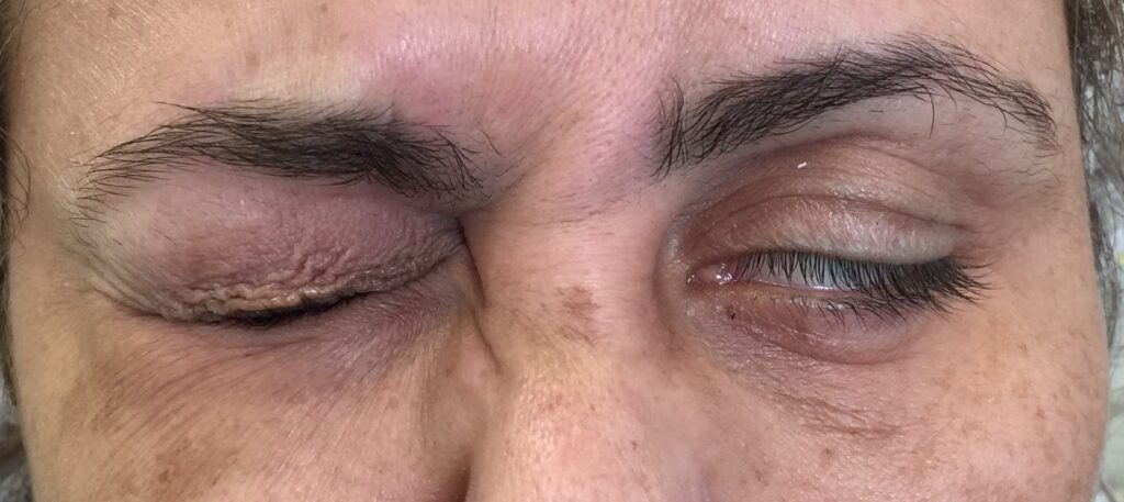 - Incapacidade de levantar a sobrancelha ou franzir a testa